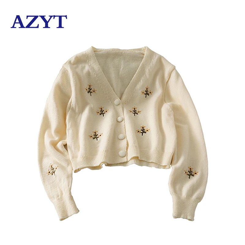 Женский трикотажный кардиган с цветочной вышивкой и V-образным вырезом