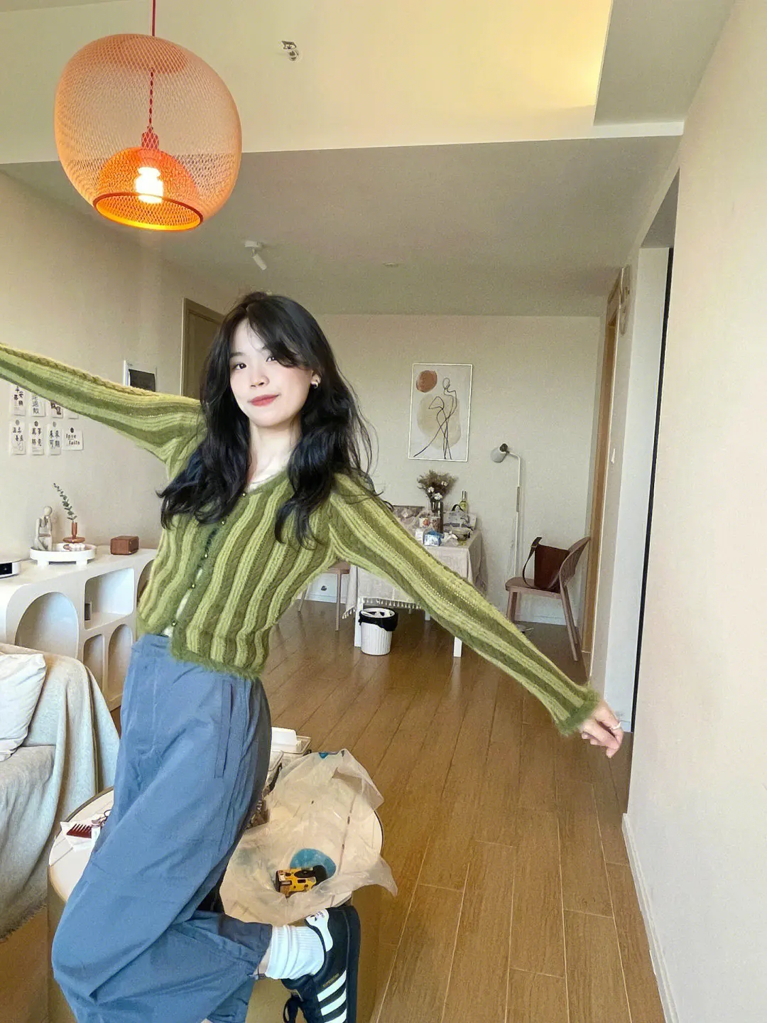 Женский трикотажный кардиган с V-образным вырезом, в полоску