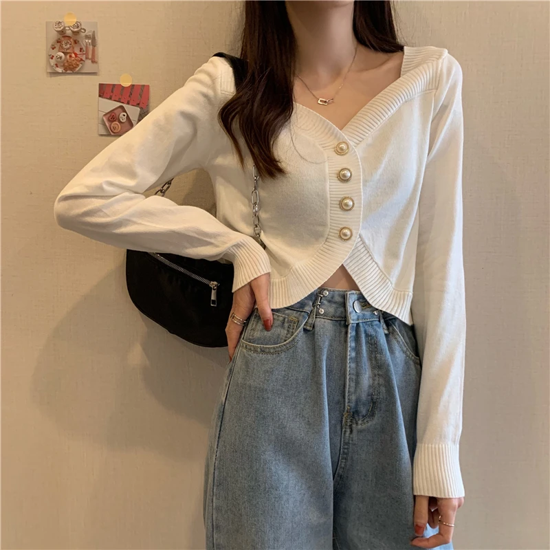 Женский трикотажный кардиган с V-образным вырезом и длинными рукавами