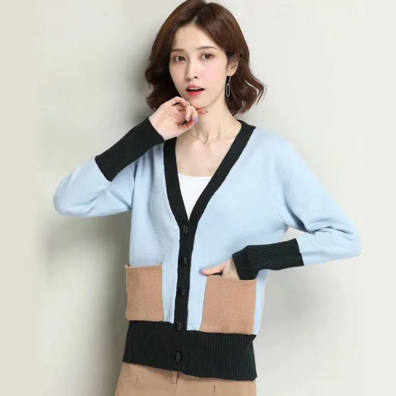 Женский трикотажный кардиган с V-образным вырезом, длинным рукавом и пуговицами