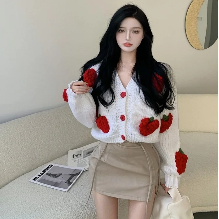 Женский трикотажный кардиган с V-образным вырезом и длинным рукавом