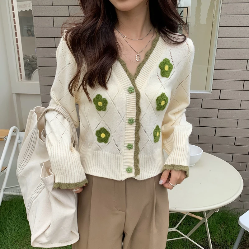 Женский трикотажный кардиган с V-образным вырезом и длинным рукавом