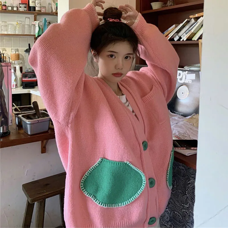 Женский трикотажный кардиган с V-образным вырезом, свободного покроя