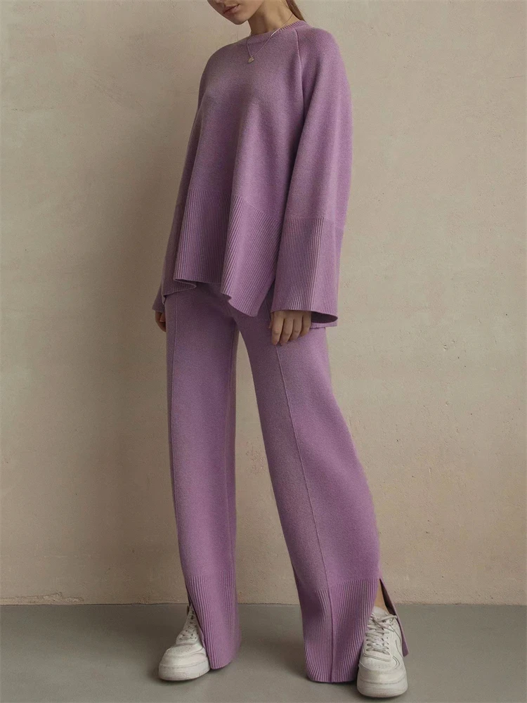 Женский трикотажный комплект из Свитера и брюк-клеш, свободного кроя