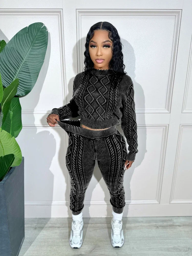 Женский трикотажный комплект из двух предметов, свитер с длинным рукавом и брюки-карандаш