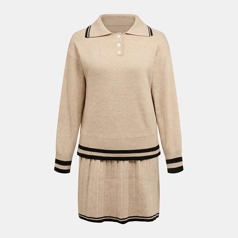 Женский трикотажный костюм с длинными рукавами, лацканами и юбкой на бедрах One Size пшеничный