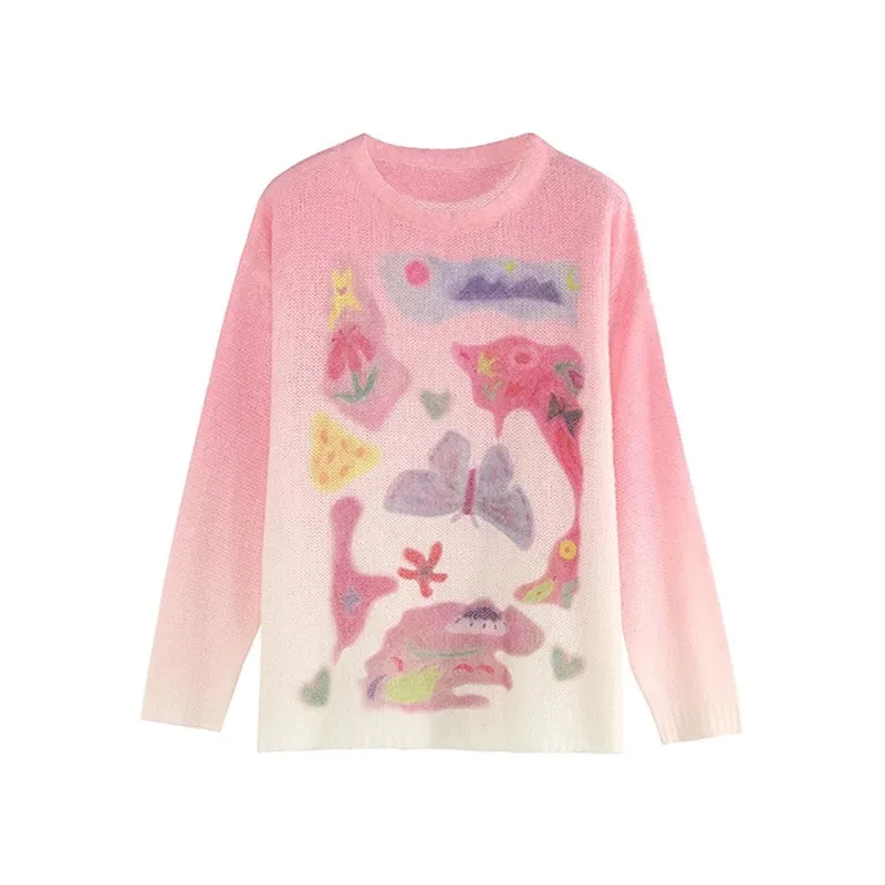 Женский трикотажный пуловер с круглым вырезом и длинным рукавом, свободного покроя