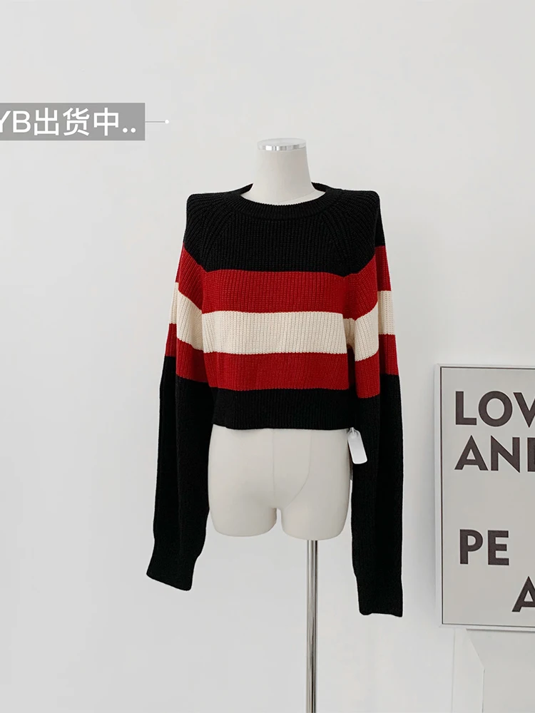 Женский трикотажный пуловер с круглым вырезом, с длинным рукавом