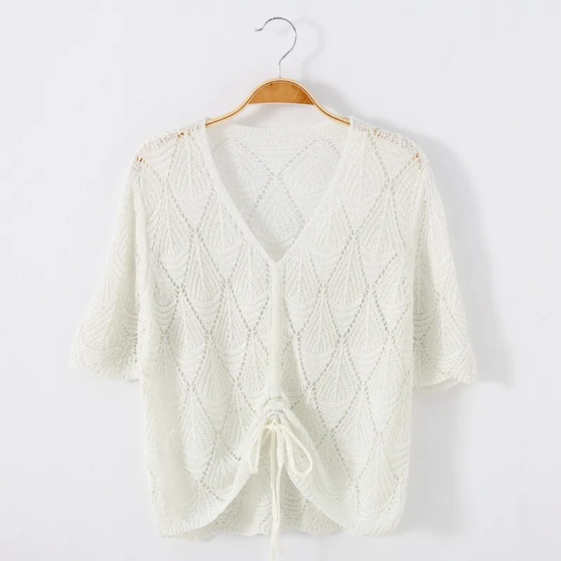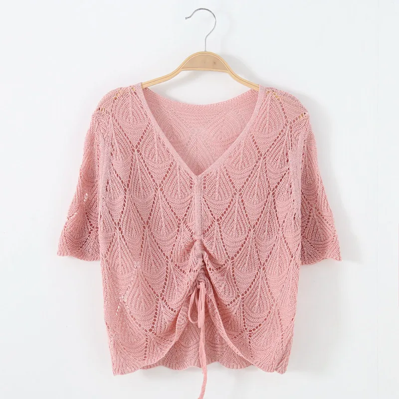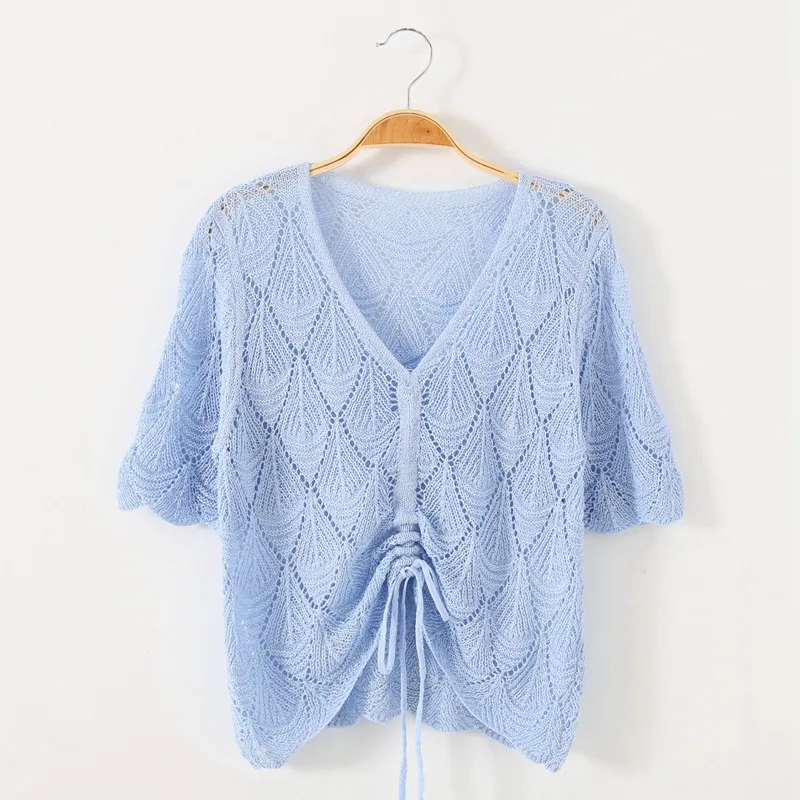 Женский трикотажный пуловер с рукавом и V-образным вырезом