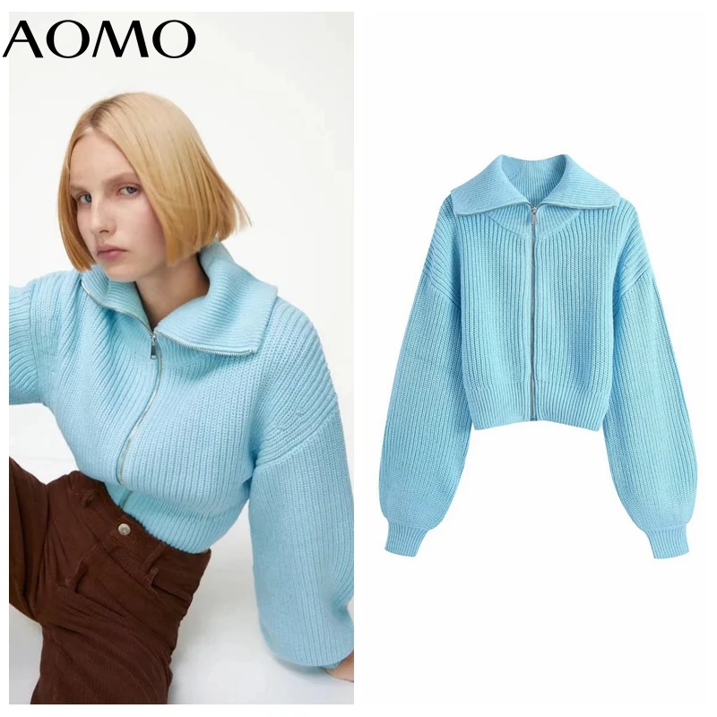 Женский трикотажный свитер-водолазка AOMO, синий свитер на молнии, пуловеры оверсайз, шикарные топы BE722A, 2021