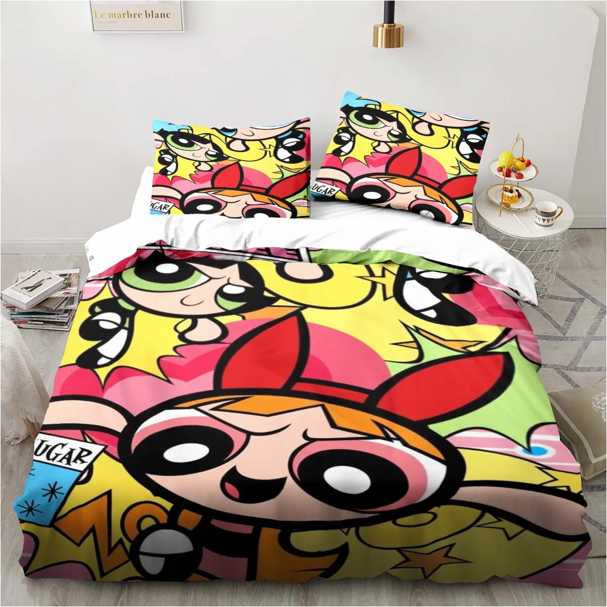 T-The Powerpuff Girls Sheets Quilt Covers Bedding Dormitory Sheets Three-piece Bedding Set Three-piece Soft Warm Bedding Set