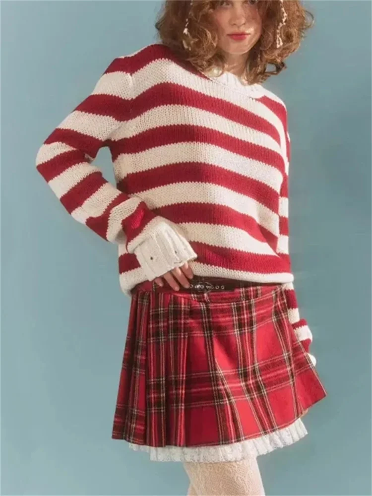 Женский трикотажный свитер в полоску, трикотажный пуловер с круглым вырезом и длинными рукавами для осени и зимы