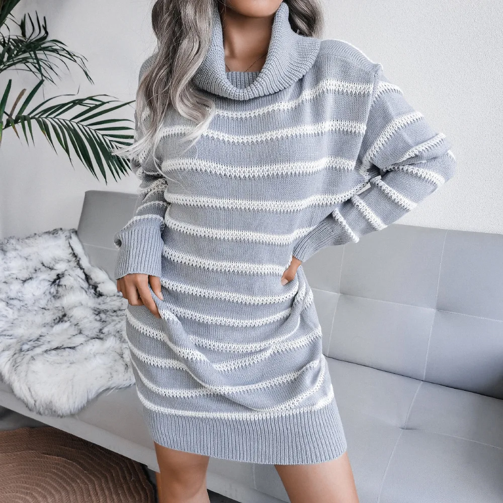 Женский трикотажный свитер в полоску с высоким воротником, Осень-зима 2023