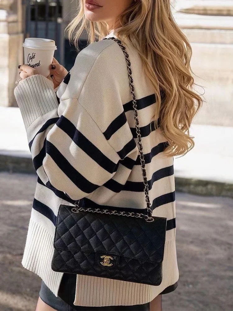 Женский трикотажный свитер в полоску, элегантный пуловер оверсайз с круглым вырезом, осень 2022