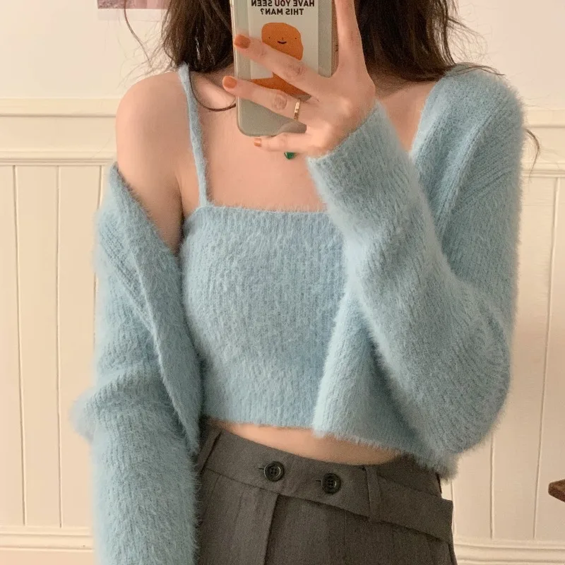 Женский трикотажный свитер, кардиган и майка в Корейском стиле, 4 цвета, модель X2296 на весну и осень, 2022