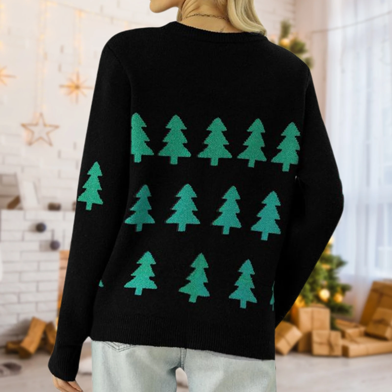Женский трикотажный свитер свободного кроя с длинным рукавом и круглым вырезом
