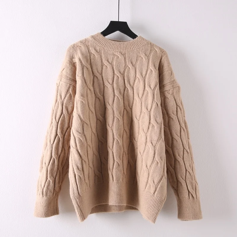 Женский трикотажный свитер, свободный однотонный пуловер с круглым вырезом, Осень-зима 2021