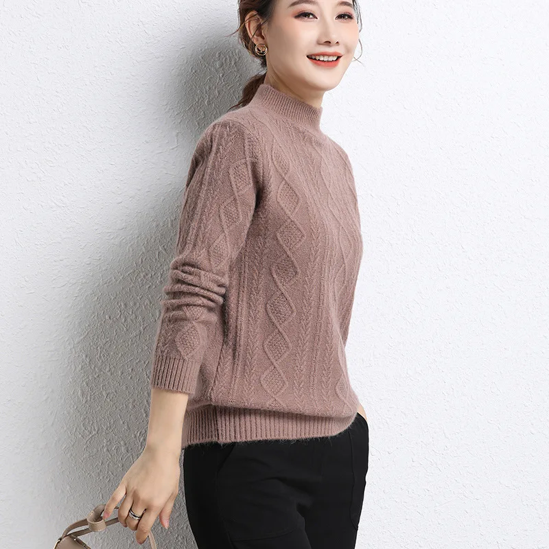 Женский трикотажный свитер с воротником-стойкой, на осень/зиму
