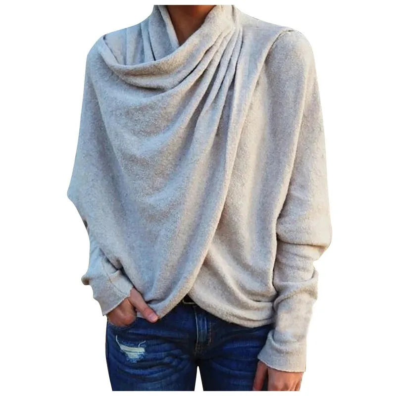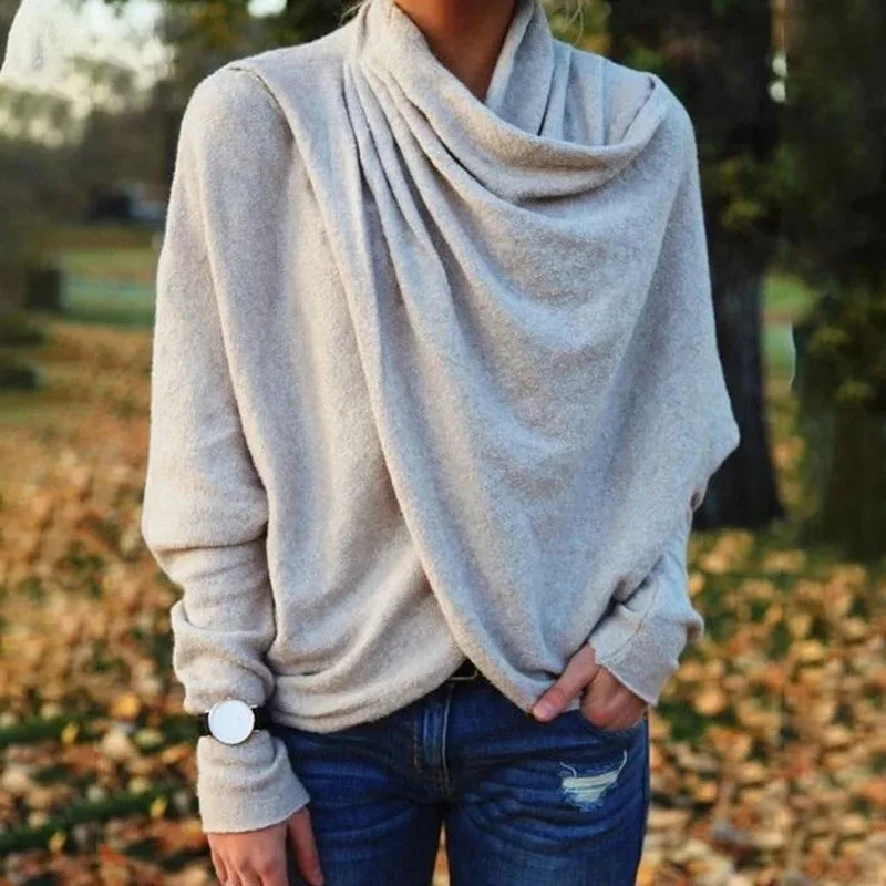 Женский трикотажный свитер с длинным рукавом и воротником-хомутом