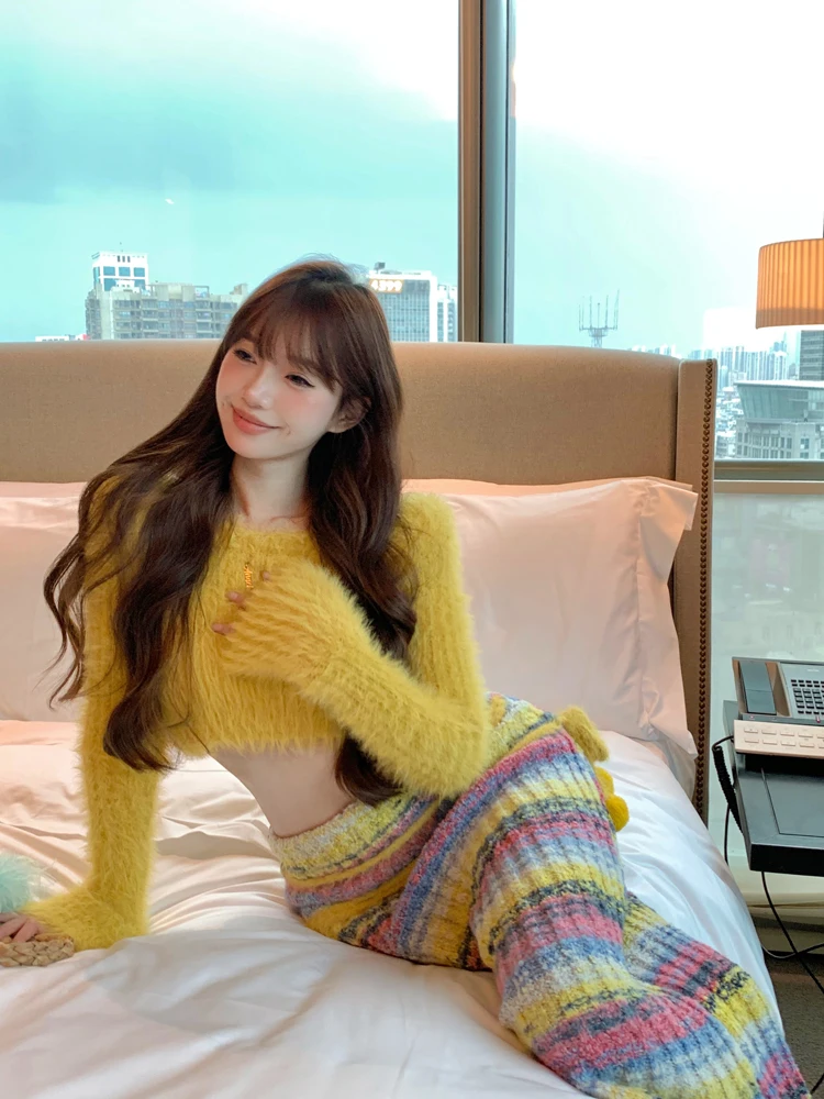 Женский трикотажный свитер с завышенной талией и низким воротником