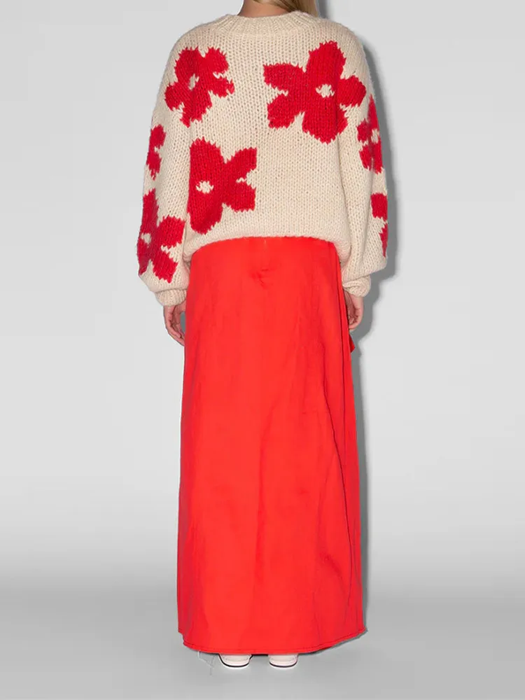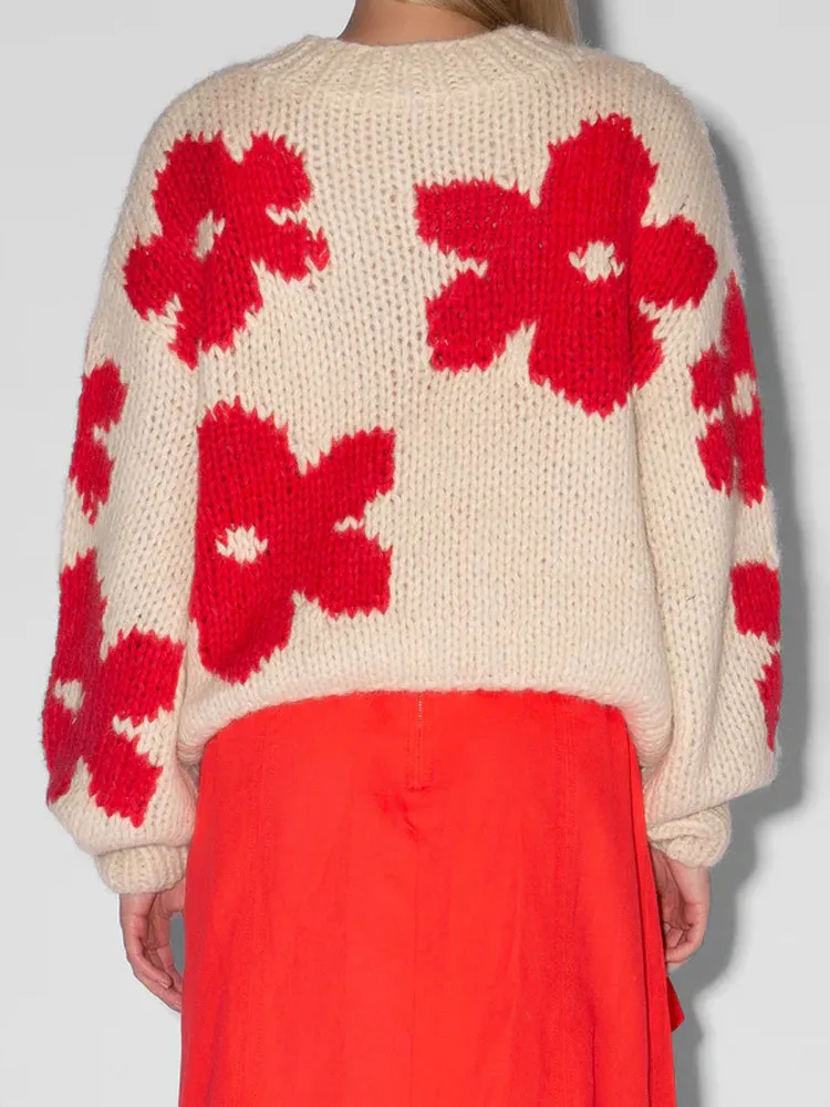 Женский трикотажный свитер с круглым вырезом и длинными рукавами