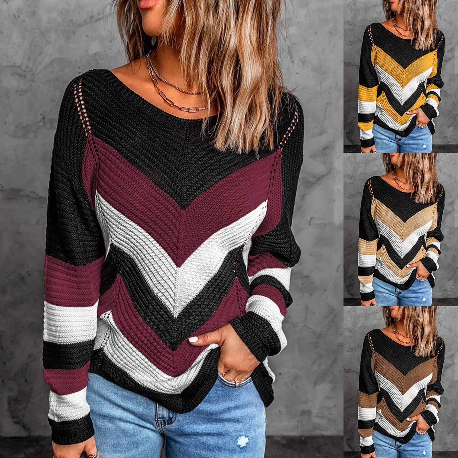 Женский трикотажный свитер с круглым вырезом и длинным рукавом
