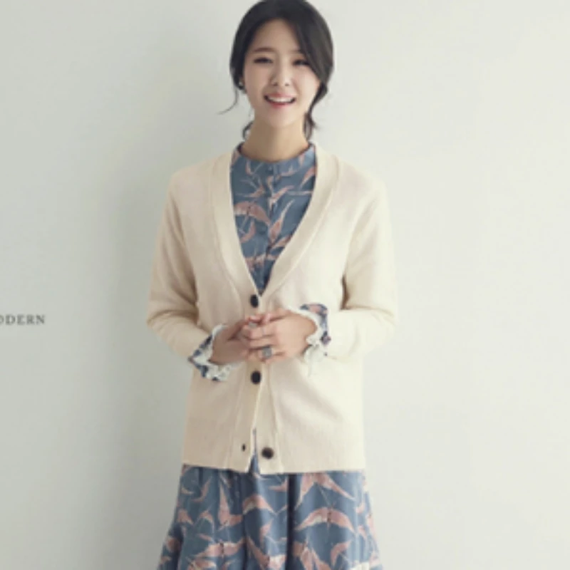 Женский трикотажный свитер с V-образным вырезом и длинным рукавом