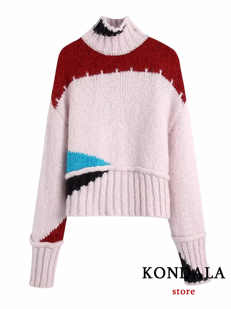 Женский трикотажный свитер KONDALA, повседневный разноцветный свитер с длинным рукавом и ложным воротником, весна 2023