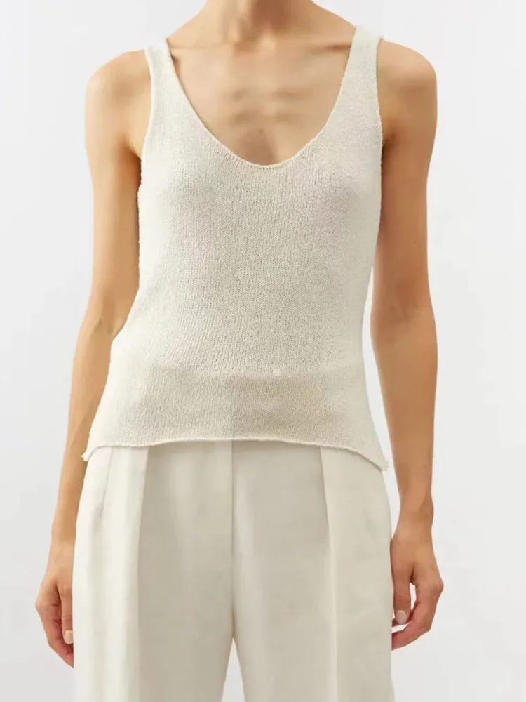 Женский трикотажный топ без рукавов, белый или черный Повседневный дышащий жилет из смеси льна, лето 2024
