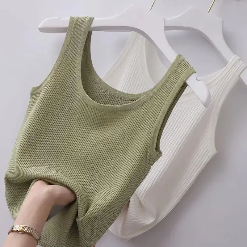 Женский трикотажный топ без рукавов, однотонная черная или белая трикотажная майка с круглым вырезом
