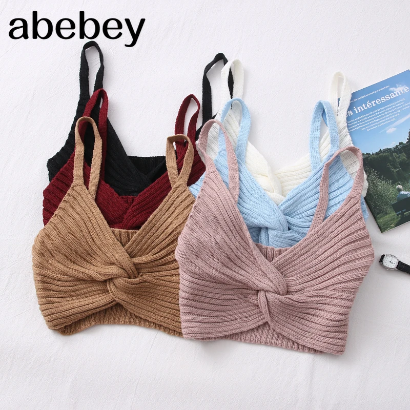 Женский трикотажный топ на бретелях, облегающий эластичный Топ с перекрестной грудью, укороченный топ без бретелей для женщин, весенние топ...