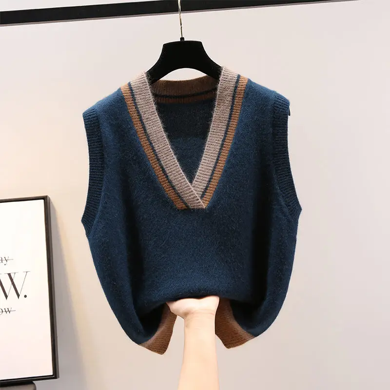 Женский трикотажный топ, повседневный однотонный облегающий жилет, с V-образным вырезом, на осень и зиму, H1203, 2021