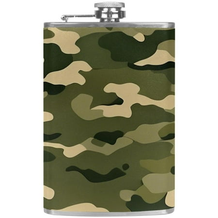 josid Camouflage Pattern 3.6x6in Stainless Steel Small Flask Leak-Proof Stainless Steel Construction Wrapped in Premium Two-Layer Leather Nano-Printed Design 227ml Capacity