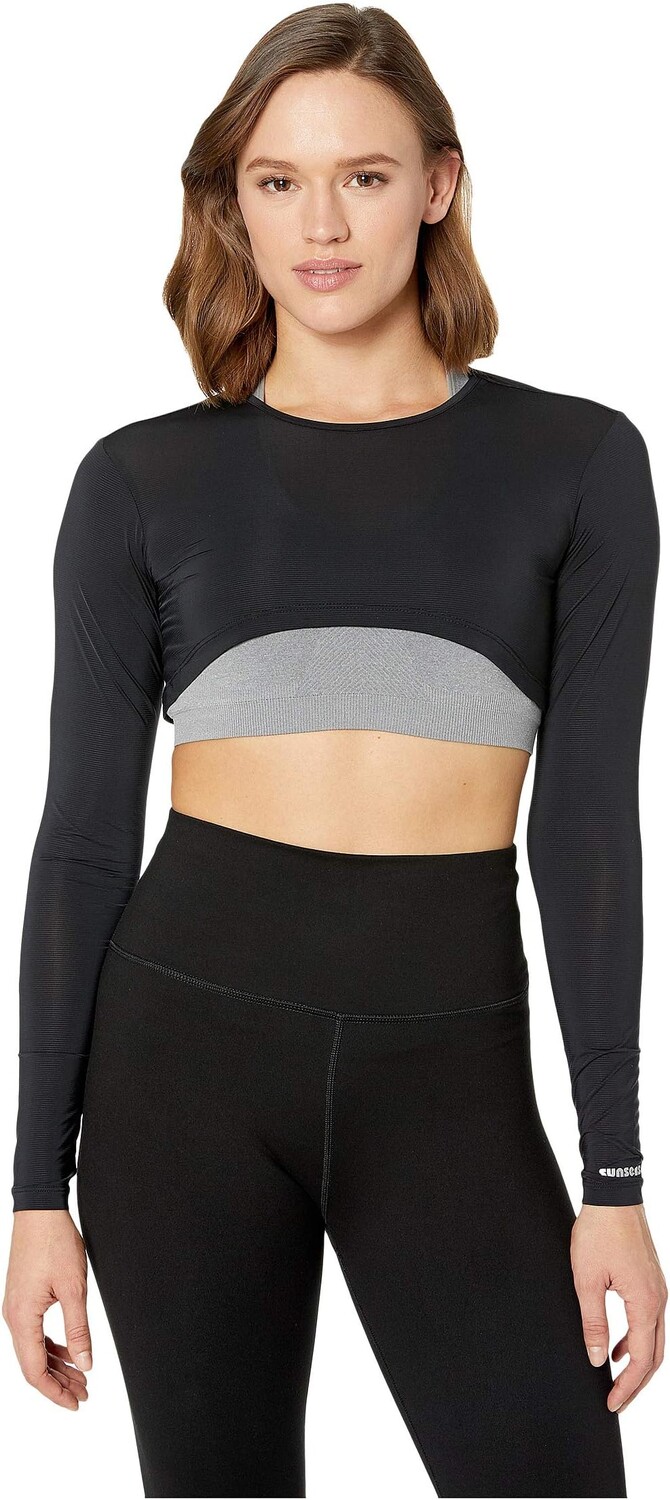 Легкий укороченный многослойный топ с круглым вырезом и длинными рукавами Sunsense 35 SPF Jamie Sadock, цвет Jet Black