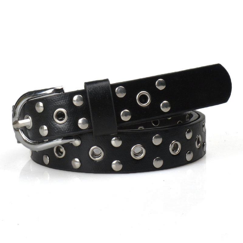 Женский узкий ремень с заклепками Женский ремень в стиле панк Тонкий ремень с пряжкой-иглой Пояс Пояс Повседневный универсальный ремень 110cm чёрный