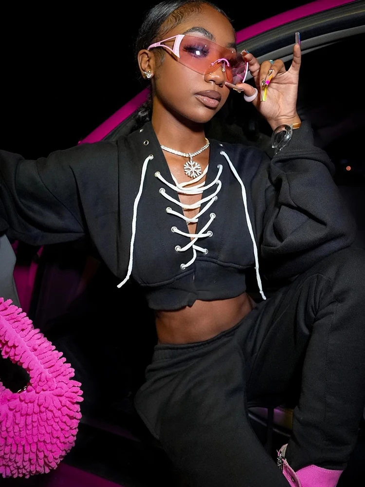 Женский укороченный пиджак на шнуровке, с длинным рукавом, в стиле Харадзюку