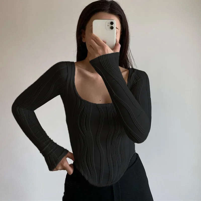 Женский укороченный топ с квадратным вырезом, длинным рукавом и квадратным вырезом