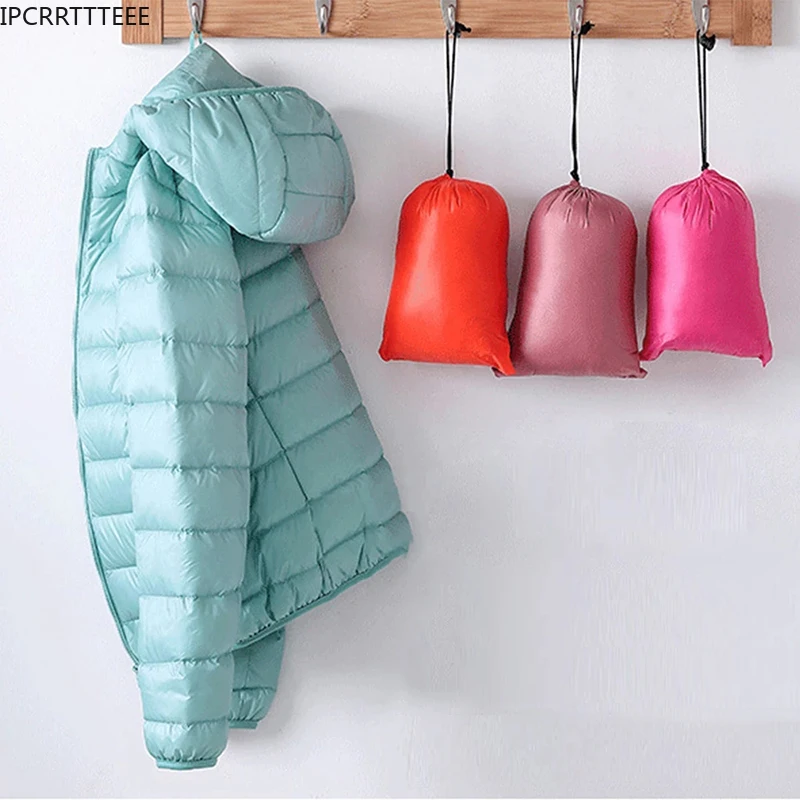 Женский ультралегкий пуховик на белом утином пуху, с капюшоном и длинным рукавом