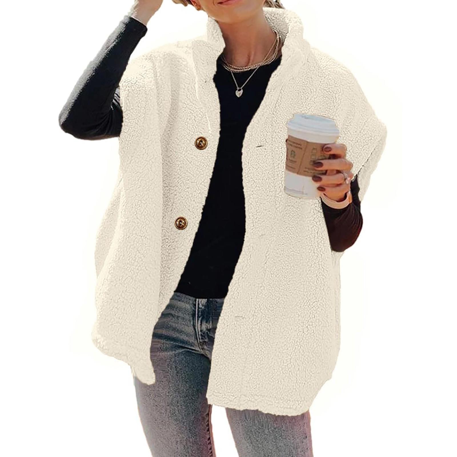 Женский флисовый жилет свободного покроя, теплая куртка на пуговицах с карманами L бежевый