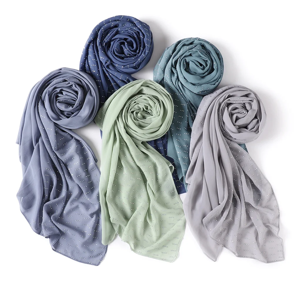 Женский хиджаб шарф Горячие Стразы Алмазный цветок твердый Простой пузырьковый шифон Hi-Q Роскошные палантины женский хиджаб