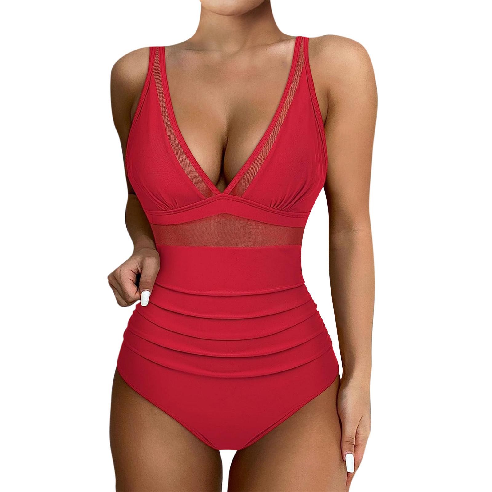 Женский цельный сексуальный бикини в сетку с подкладкой для бюстгальтера без стального бюстгальтера Купальник XL красный