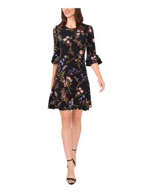 Женский черный пуловер CECE без подкладки с рукавом 3/4 мини-облегающего + расклешенное платье