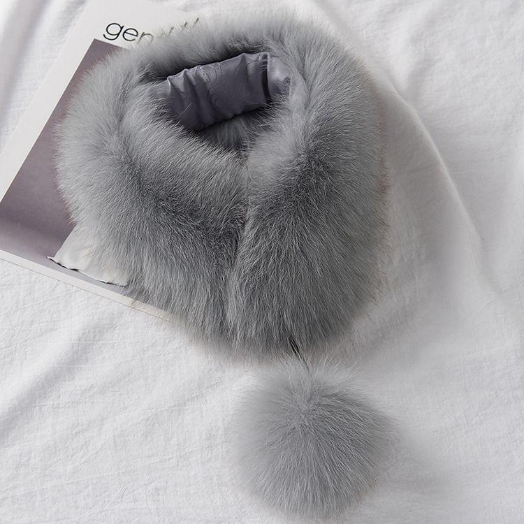 Женский шарф из лисьего меха в корейском стиле с помпоном и магнитной застежкой - Универсальный осенне-зимний утеплитель для шеи 60cm