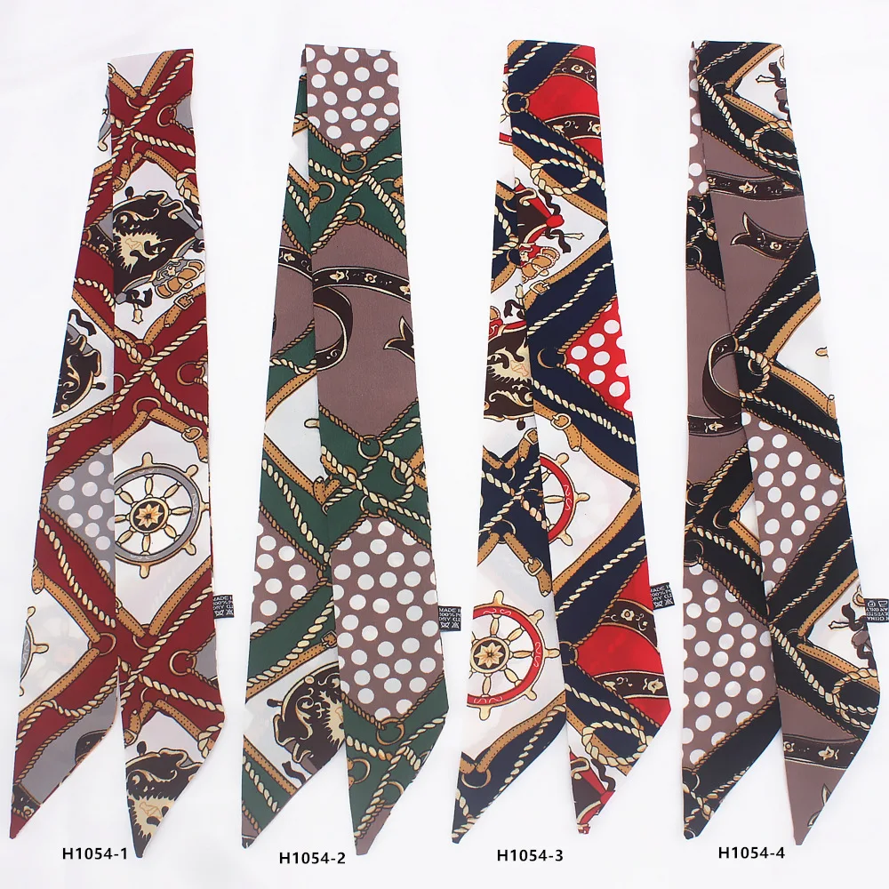 Женский шелковый шарф с принтом H1054, длинный шелковый шарф с ручками и лентами, 2019
