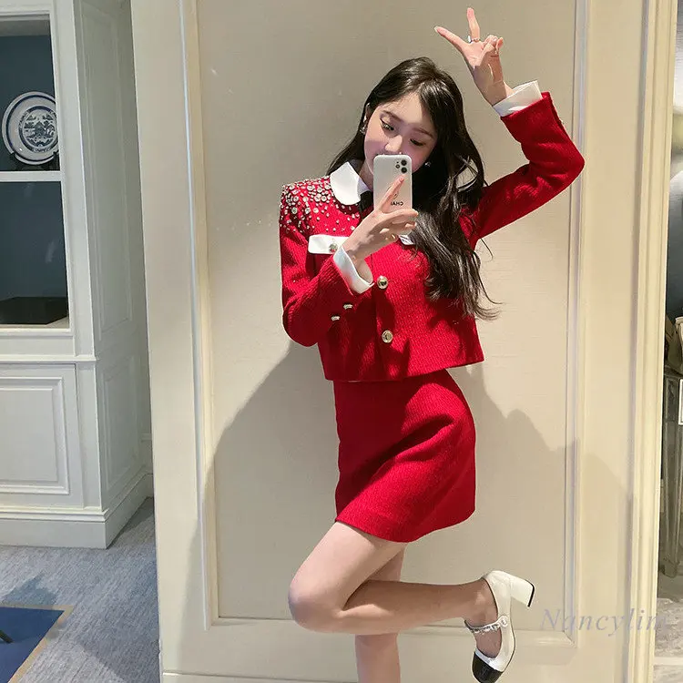 Женский шерстяной костюм-двойка, красная короткая куртка и мини-юбка в стиле тяжелой промышленности, осень 2022