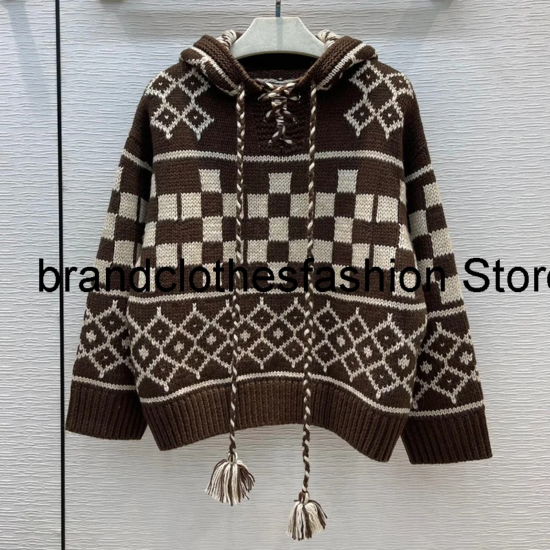 Женский шерстяной свитер с капюшоном, свободный мягкий Повседневный пуловер из альпаки с квадратным узором и бахромой, Осень-зима 2021