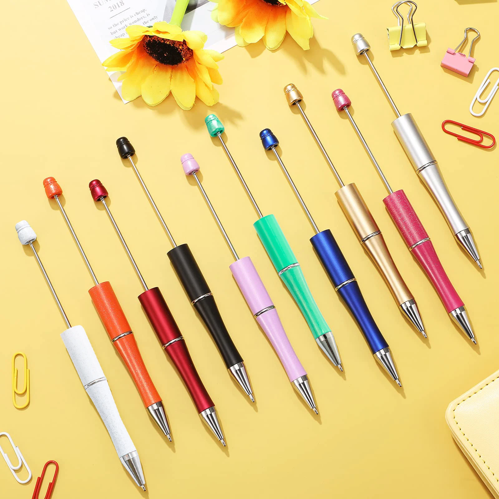 10Pcs Beaded Ballpoint Pens Plastic Beadable Pens Wedding Favors Birthday Party Gifts Student Stationery Pens for Writing