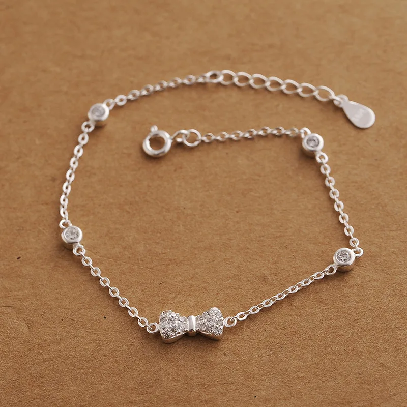 Женский ювелирный комплект из серебра S925 пробы, с бантом и кристаллами