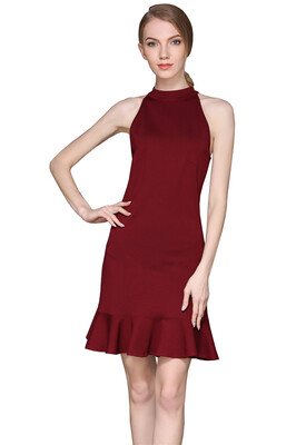 Женское Короткое Мини-платье Без Рукавов с Высоким Воротником