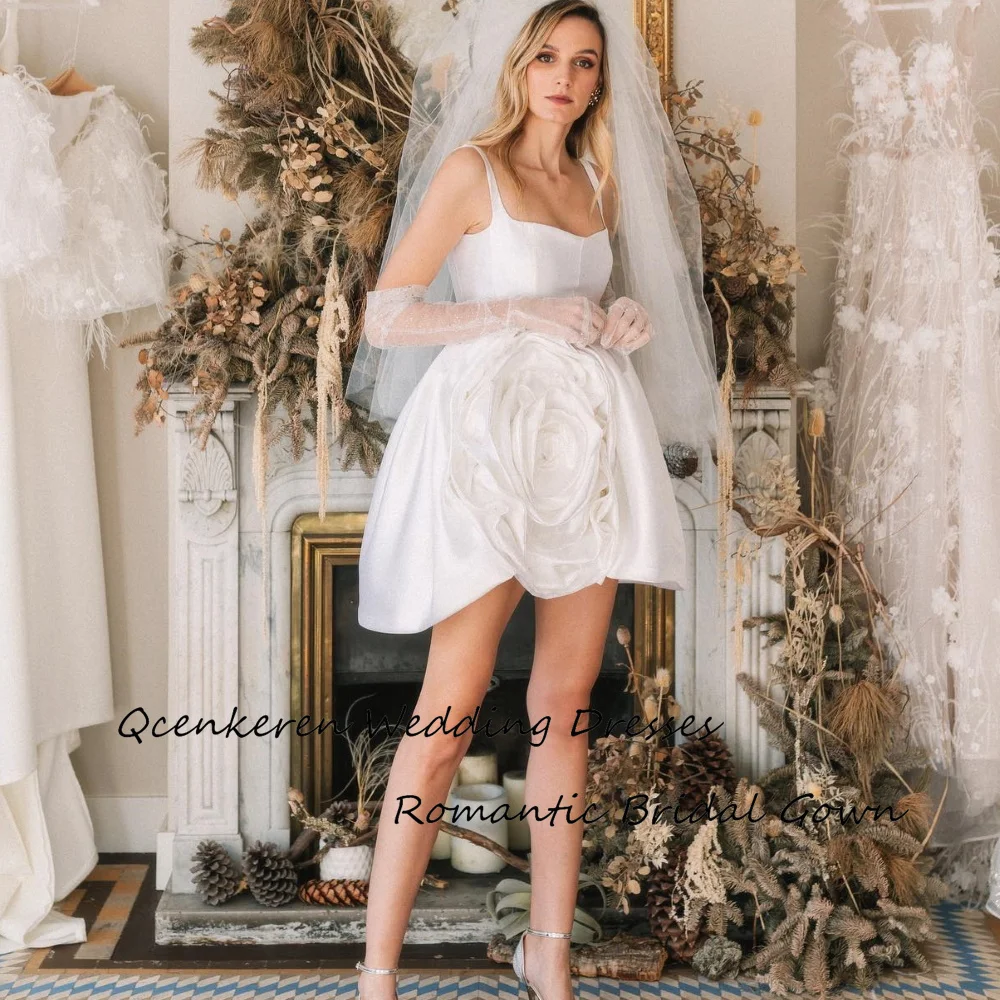 Женское Короткое Свадебное платье Qcenkeren, ТРАПЕЦИЕВИДНОЕ платье невесты на бретелях с 3D цветами, 2024